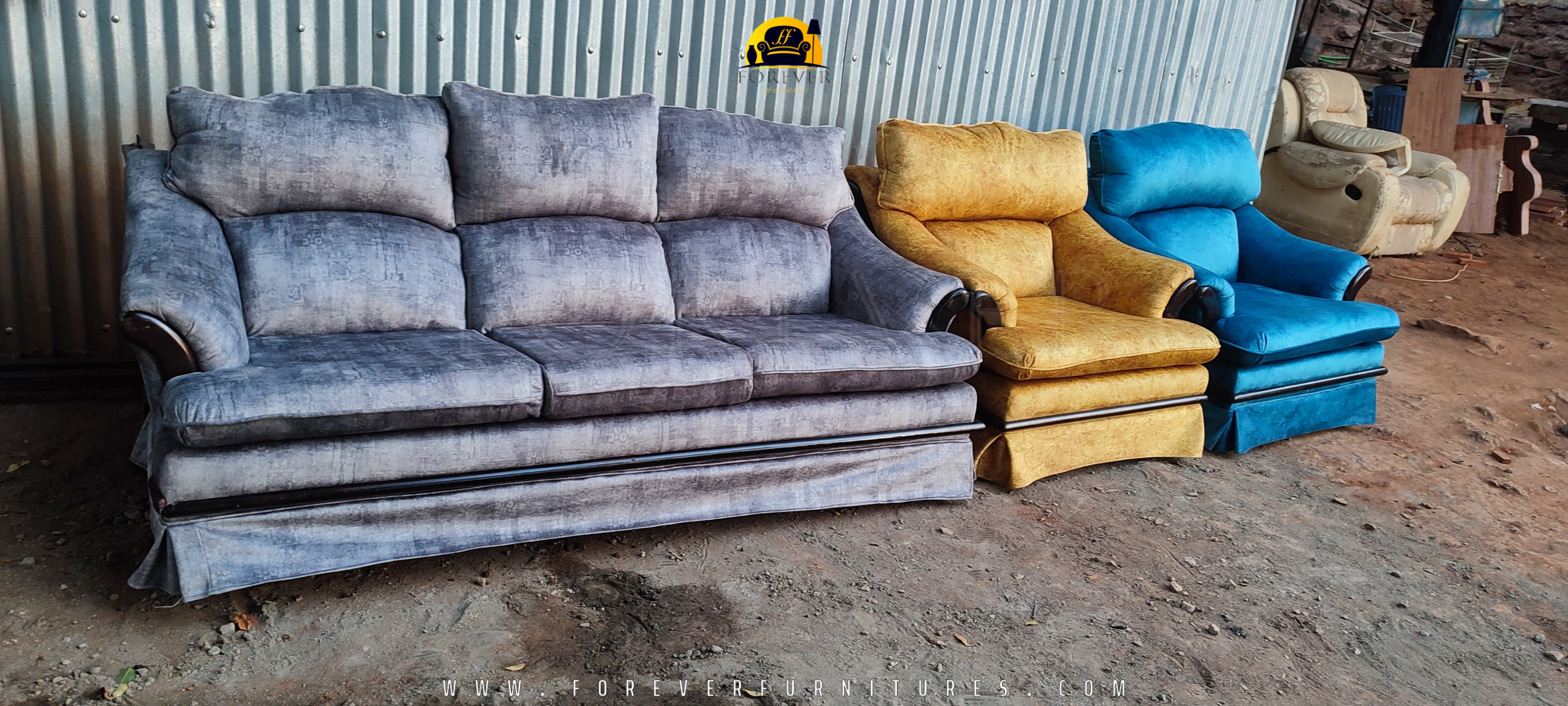 Colored Couch Upholstery Project done by Forever Furnitures Date: 2024 Category: FurnitureResotration projectsUpholstery Repairs Tags: CouchFurniturePaddingRe-upholsterySofa set