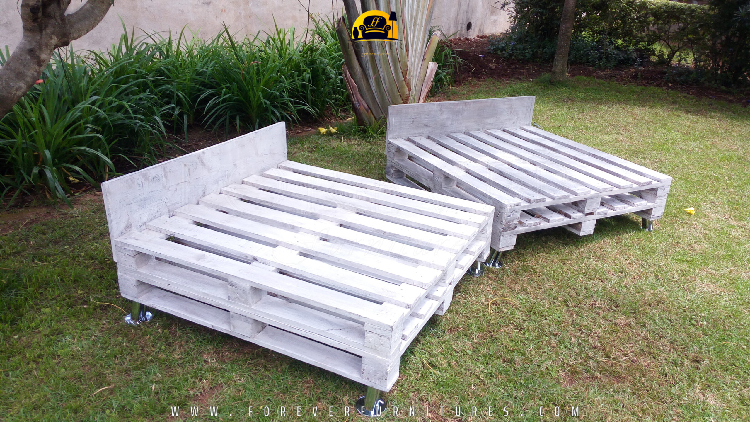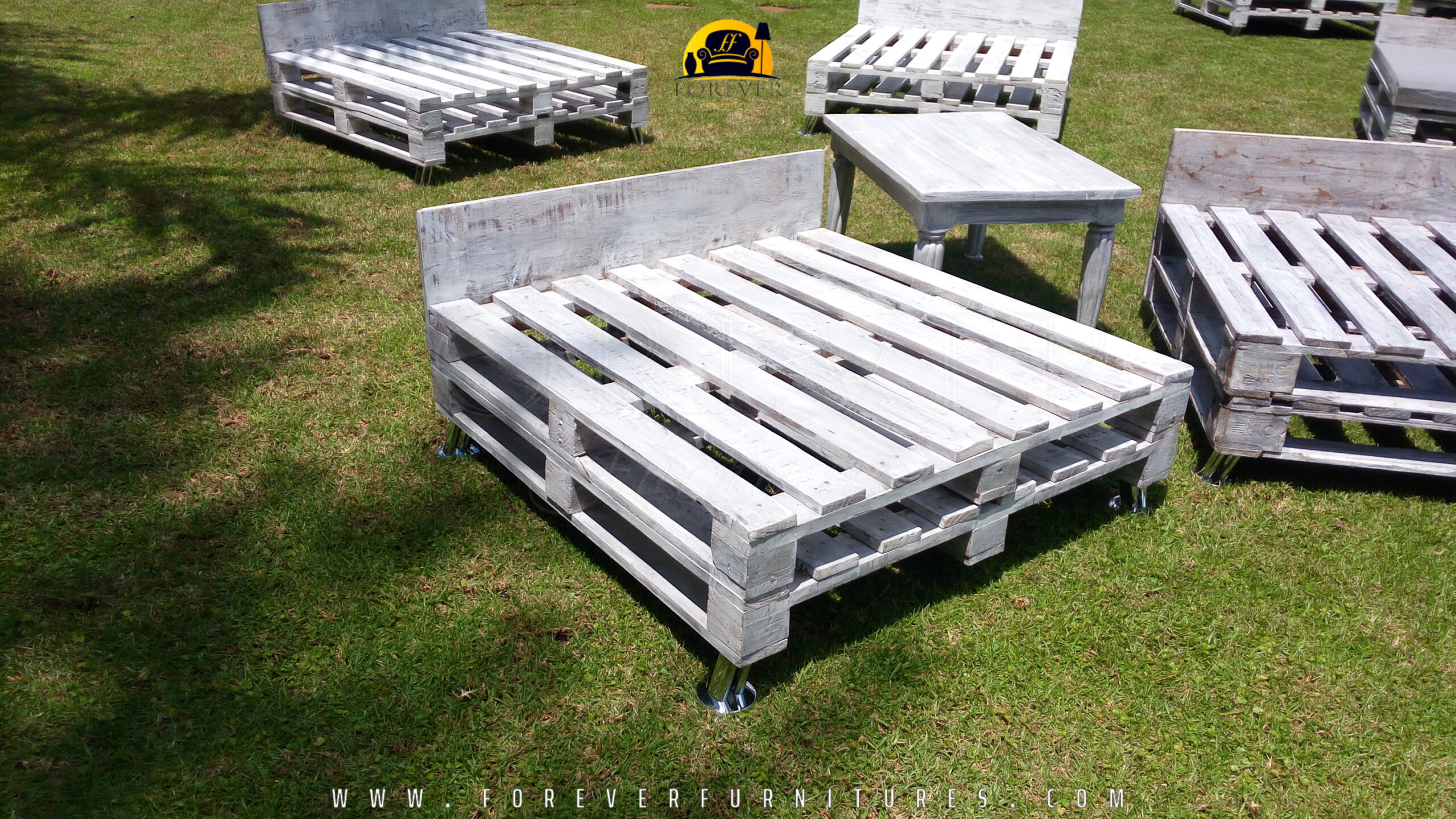 Image of white wooden pallets crafted by Forever Furnitures